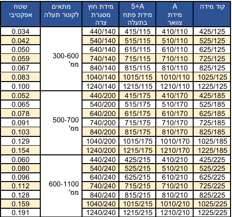 טבלת מידות למיישר זרימה S :